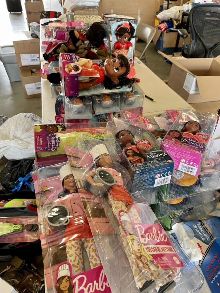 One of the first things I was told was to stay flexible because things were changing by the day and hour. It was an unprecedented experience for everyone involved, and things certainly did change. Individual clothing packets became boxes filled with mass quantities of clothing sorted by gender, size, and type. The warehouse filled as donations poured in, walls of diaper boxes lining makeshift pathways. Intake, sorting, and inventory were all streamlined. Our military colleagues finetuned processes to get supplies into guests’ hands.