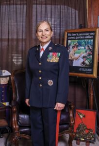 Angela Salinas enlisted in the U.S. Marine Corps in May of 1974. At that time, of the 180,000 Marines, less than 2,000 were women. Salinas was among the first to attend gender-integrated officer training, and in 1989 she become the first woman to command a Marine Corps recruit station. Salinas served in the U.S. Marine Corps for 39 years and was the first Hispanic woman to become a General. When she retired in 2013, she was the highest-ranking female officer in the Marines.