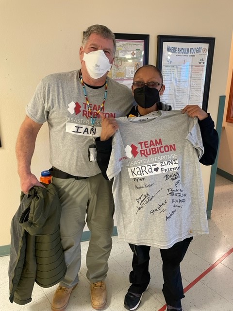 Meeting the diverse, capable, motivated professionals I got to team up with, and experiencing the heart and integrity of those working to serve their own community at their Indian Health Service hospital, are among the most rewarding aspects of getting to serve. Team Rubicon handled all the details of travel, logistics, and keeping us fed and housed and safe in order for us to be able to do our job, which was any and everything that may need to get done to help. As a nurse in the emergency department, that included everything from cleaning rooms and stocking supplies to performing chest compressions in a code to transporting patients to CT scans or to their rooms or off-site to the motel serving as the quarantine site for the community.